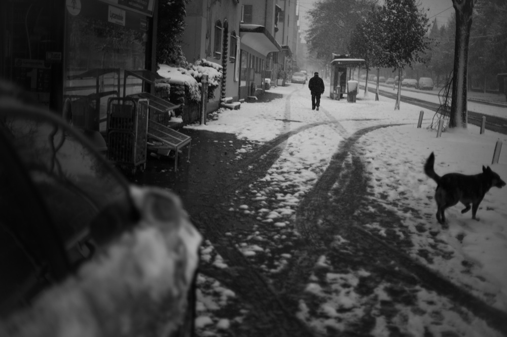 Es ist Sonntag, und circa halb sechs Uhr am Morgen. Ich bin endlich zuhause angelangt. Draussen schneit es. Eine dünne Schicht Neuschnee bedeckt die Strassen. Der Taxifahrer, der mich von der Stadtmitte nach Hause gebracht hat, stammt ursprünglich aus einem anderen Land, einem Land, in dem es nicht schneit, einem Land, das weiter unten im Süden zu finden ist. Das hat er mir verraten, und das hat man auch seinem Fahrstil angemerkt: er fuhr vorsichtig wegen des Schnees, mit Respekt, legte gar kurze Zwischenstopps ein.