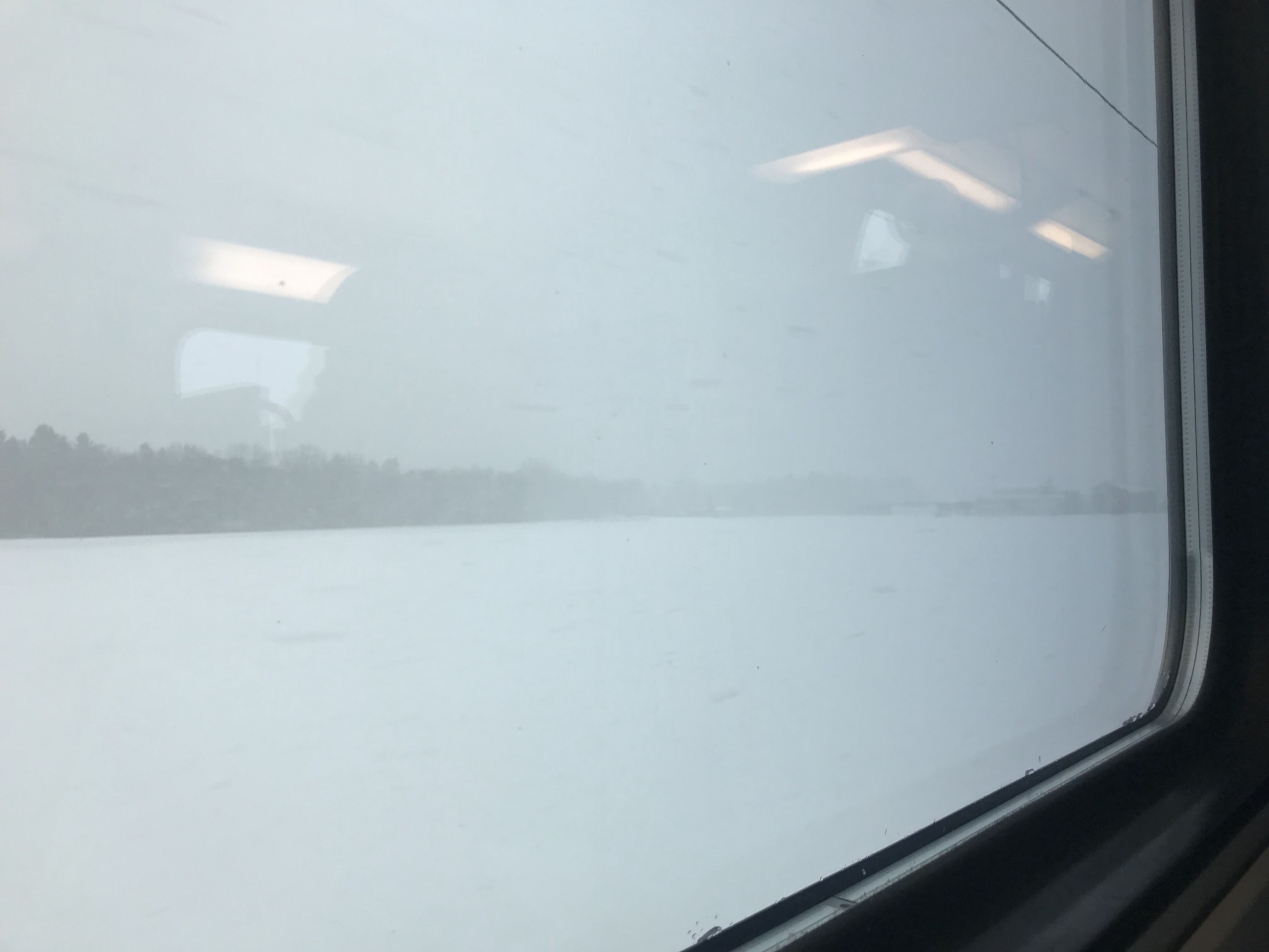 Als ich im Schlafzimmer die Fensterladen schliesse, sehe ich, dass beim Eingang des Nachbarhauses ein Mann Schnee schaufelt. Ob dieser Mann, ebenso wie ich, gerade erst nach Hause gelangt ist? Vermutlich nicht.